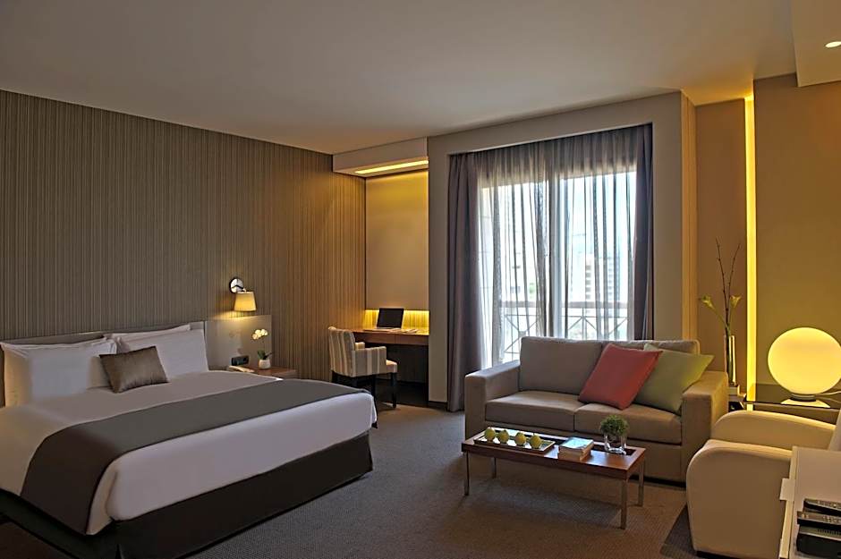 Located between the 7th and 11th floor, this spacious, air-conditioned suite features elegant interiors. It includes a seperate living room with 2 LCD flat-screen TVs, an iron with an ironing board, black-out curtains and a fully equipped kitchenette with a microwave and a fridge. Non-smoking rooms are offered depending on availability.